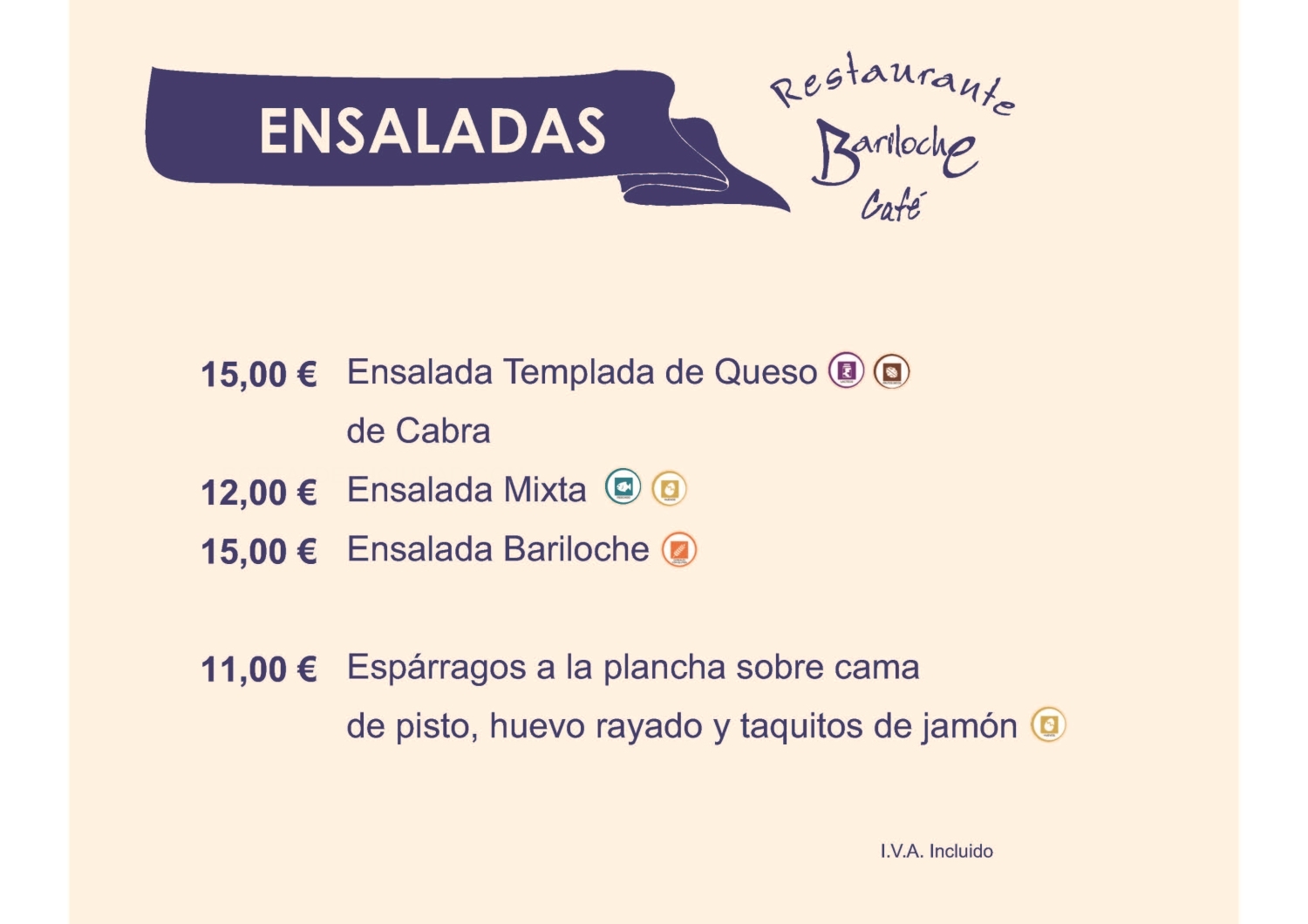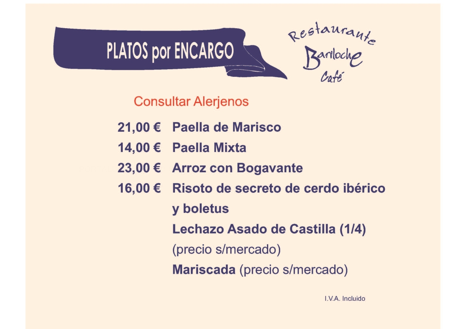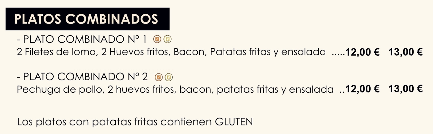 Ensaladas Entrantes Carnes Pescados Postres Bodega Platos por encargo Menús Fin de Semana Menús Diarios Menús Veganos Menús Especiales