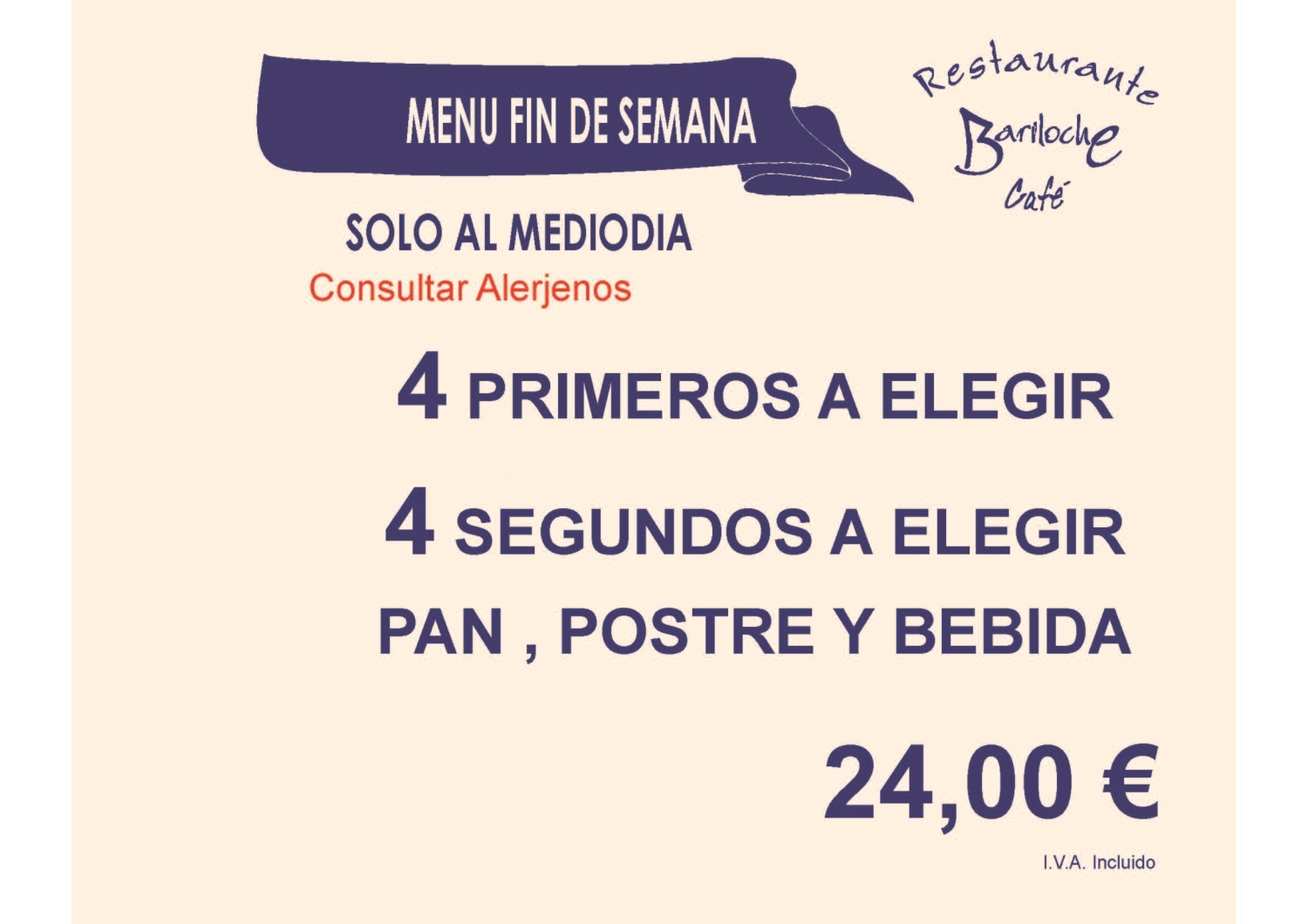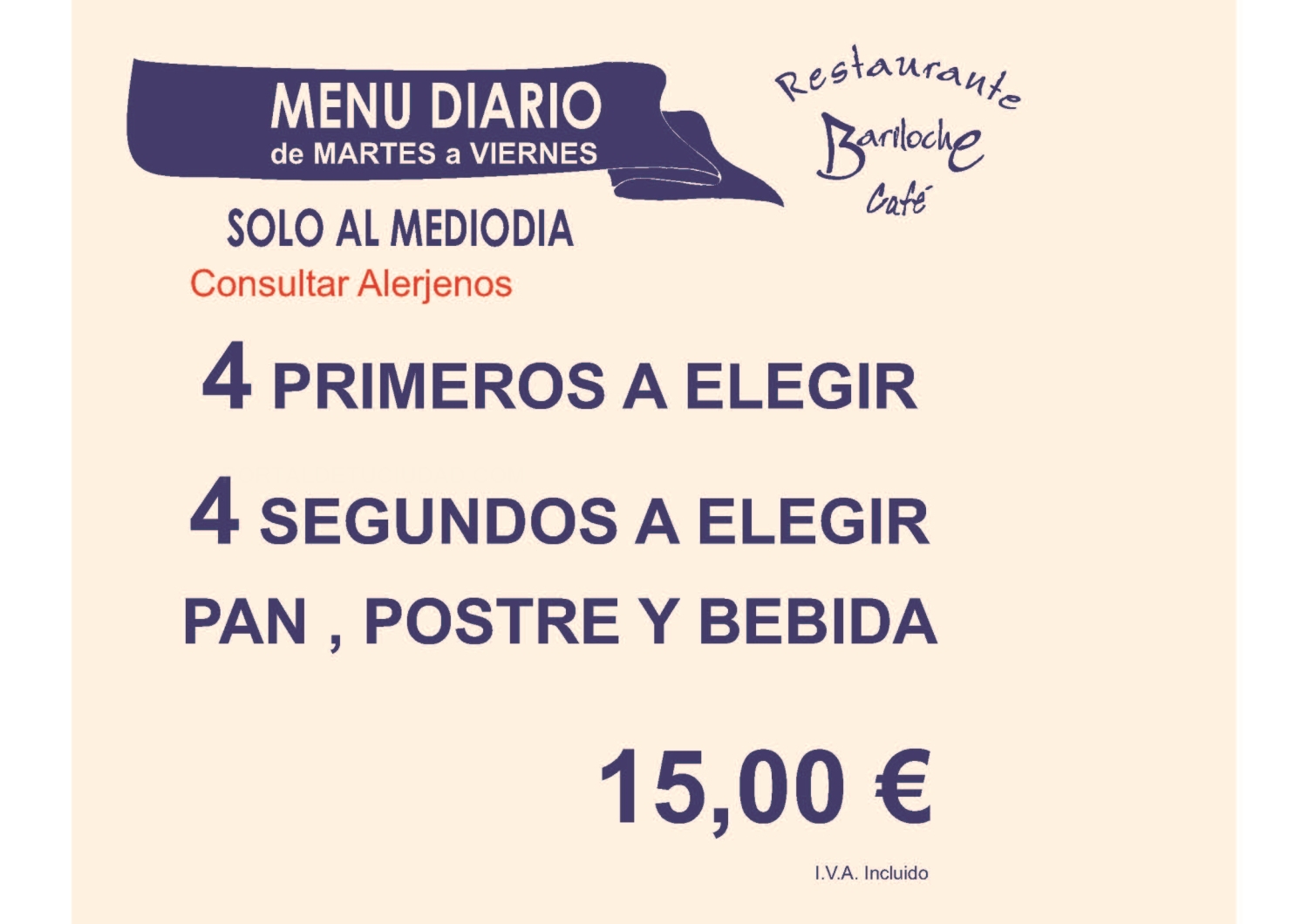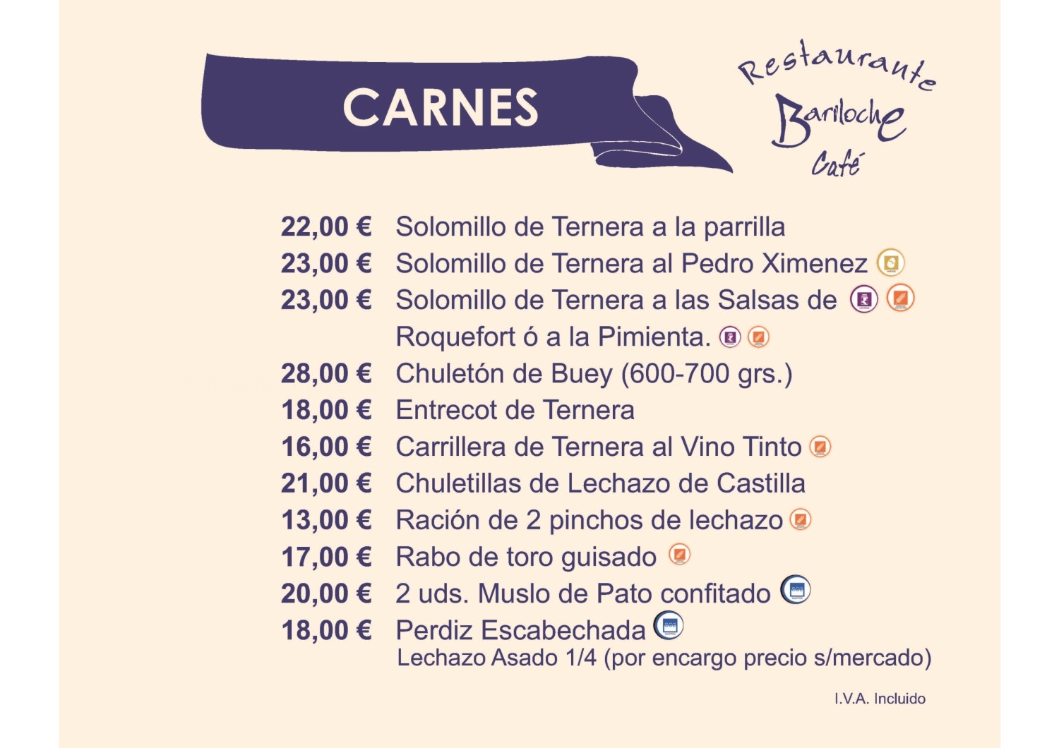 Ensaladas Entrantes Carnes Pescados Postres Bodega Platos por encargo Menús Fin de Semana Menús Diarios Menús Veganos Menús Especiales